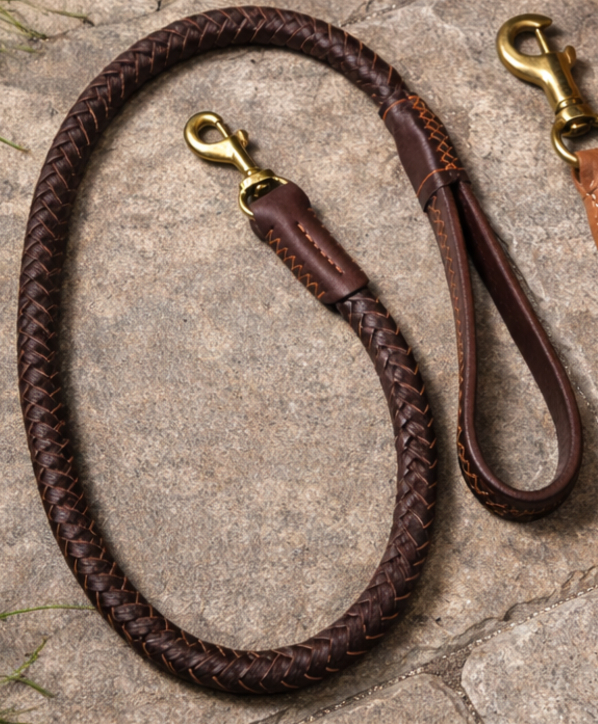 Meticulously crafted from rich, durable leather, this 115 cm lead features intricate hand-plaiting and precise stitching for a statement of refined style. Heavy-duty yet elegant, it’s finished with luxurious gold tone hardware for lasting strength and sophistication.