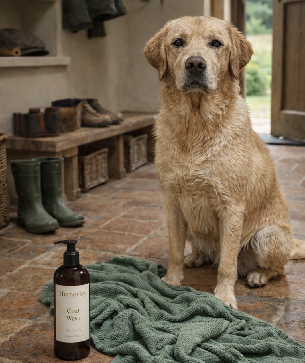 The finishing touch to a Hatherley bath, perfectly paired with our Coat Wash. Crafted in a soft, sage-hued waffle weave, this towel brings a calm, refined touch to your dog’s bath time routine. Designed to complement the Coat Wash, it completes the ritual with understated elegance.